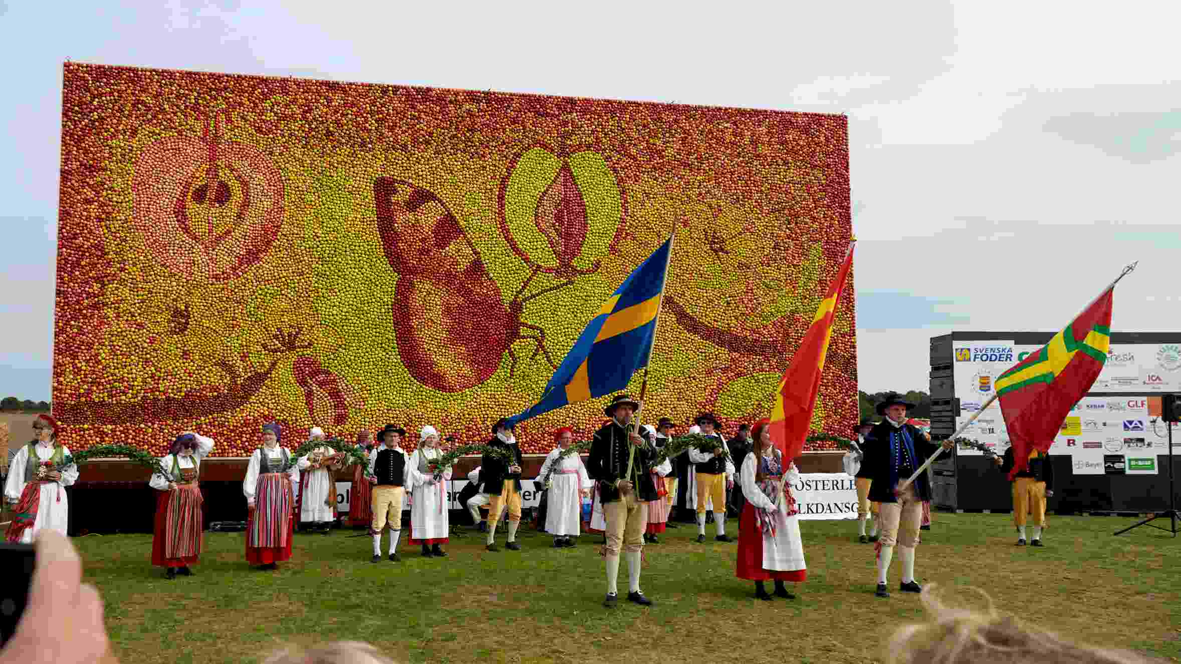 Österlen är så starkt förknippat med äpplen, fantastiska vyer över böljande landskap och havet som aldrig är långt borta. Turen till Österlen går av stapeln en vecka efter avtäckningen av äppeltavlan – då är den fortfarande lika vacker, men vi slipper trängas. Äppeltavlan är ett storslaget konstverk som har skapats av 35 000 äpplen. Vi besöker Kiviks musteri och har möjlighet att handla av deras stora utbud av smakrika produkter.