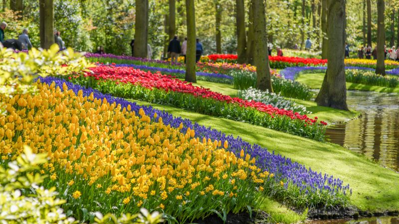 Måndag. Efter frukost är det dags att åka till Blomsterparken Keukenhof. Vi njuter av den fantastiska tulpanprakten. Parken grundades på 1840-talet och besöks årligen av miljontals turister. Här står tulpanerna i blom från mitten av april och åtta veckor framåt. På området finns restaurang och café.